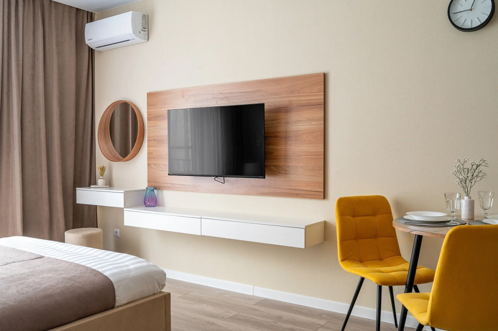 Номер уютно обставлен и оснащён необходимым, чтобы отдохнуть после долгого и насыщенного дня. Имеются телевизор. Перечисленные услуги есть не во всех номерах.