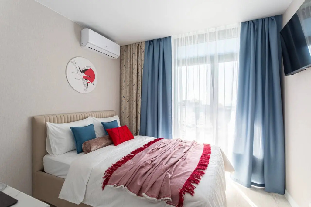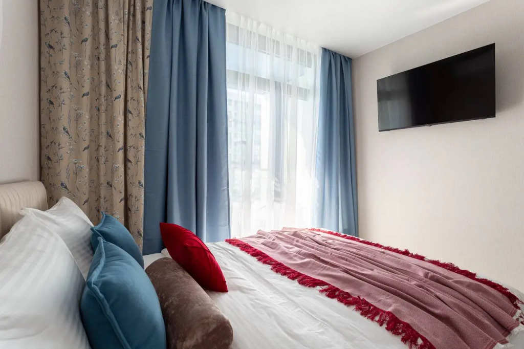Номер уютно обставлен и оснащён необходимым, чтобы отдохнуть после долгого и насыщенного дня. Имеются телевизор. Оснащение зависит от выбранной категории номера.