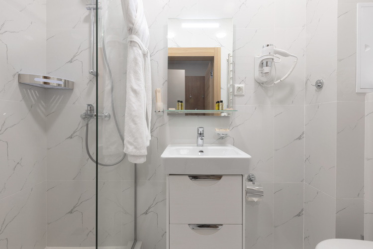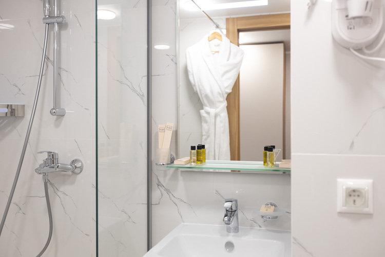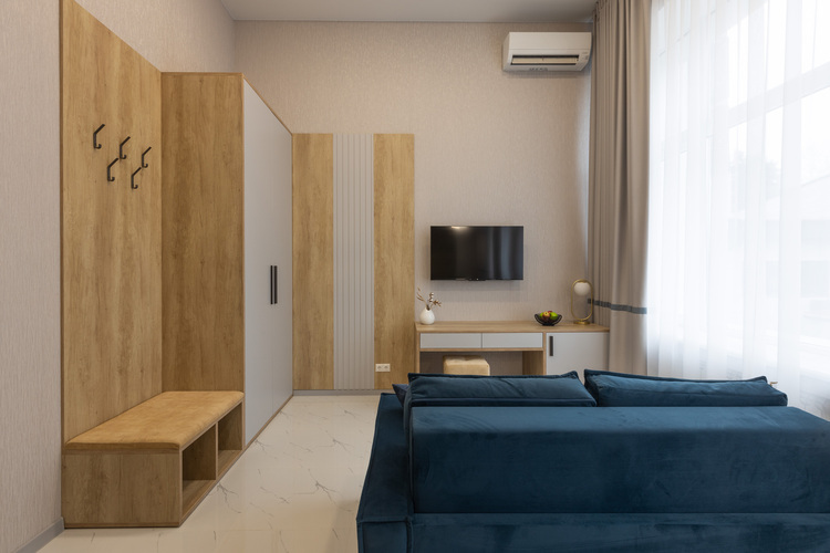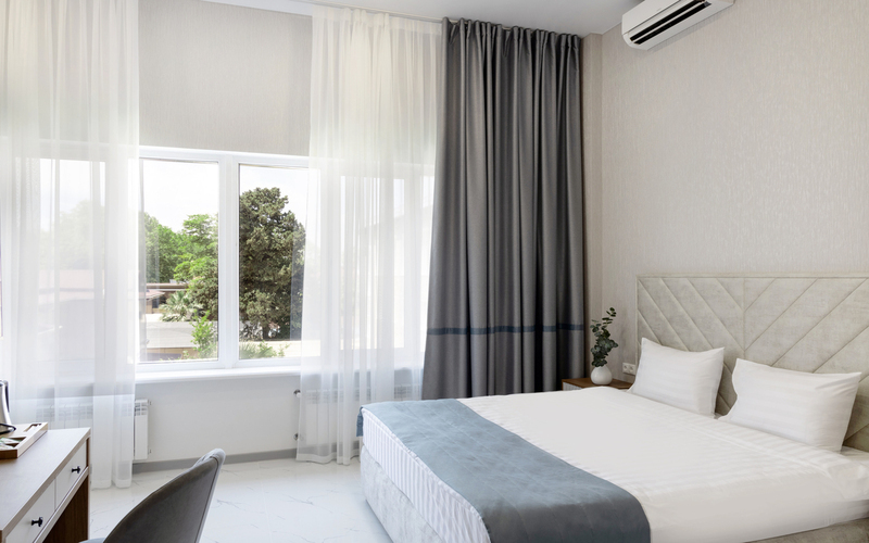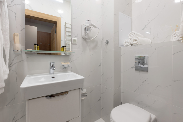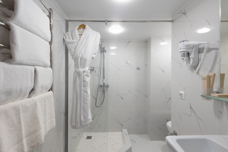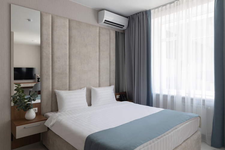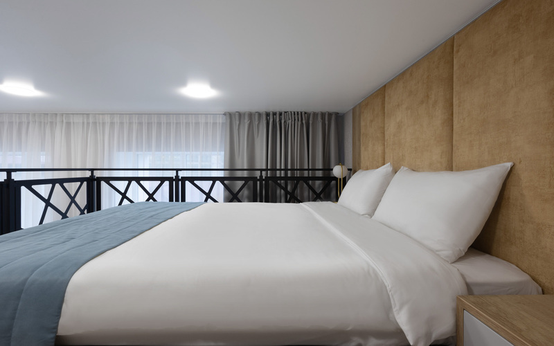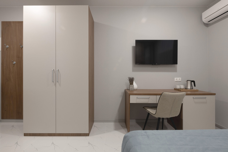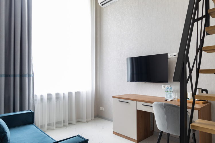 Однокомнатный номер площадью 18-24 м2, оборудованный всем необходимым для проживания. Двуспальная кровать с ортопедическим матрасом, сплит-система, места хранения вещей для эффективного использования пространства. В номере также имеются прикроватные тумбочки платяной шкаф, ТВ, стол, бесплатный Wi-Fi, телефон, индивидуальный сейф и чайная станция. Ванная комната полностью оснащена и вмещает душевую кабину, раковину, туалет, зеркало с подсветкой, фен, принадлежности для личной гигиены.