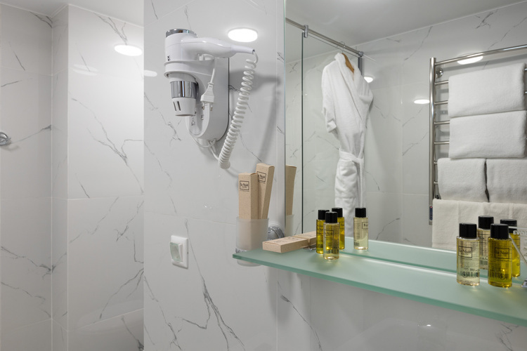 Номер площадью 19-25 м2. В номере есть двуспальная кровать, прикроватные тумбочки, шкаф для одежды, зона с телевизором, кондиционер, бесплатный Wi-Fi, телефон, индивидуальный сейф и чайная станция. В ванной комнате вы найдете все удобства: душевую кабину, раковину, туалет, зеркало с подсветкой, косметическое зеркало, фен, а также принадлежности для личной гигиены.