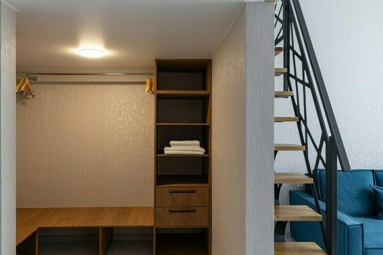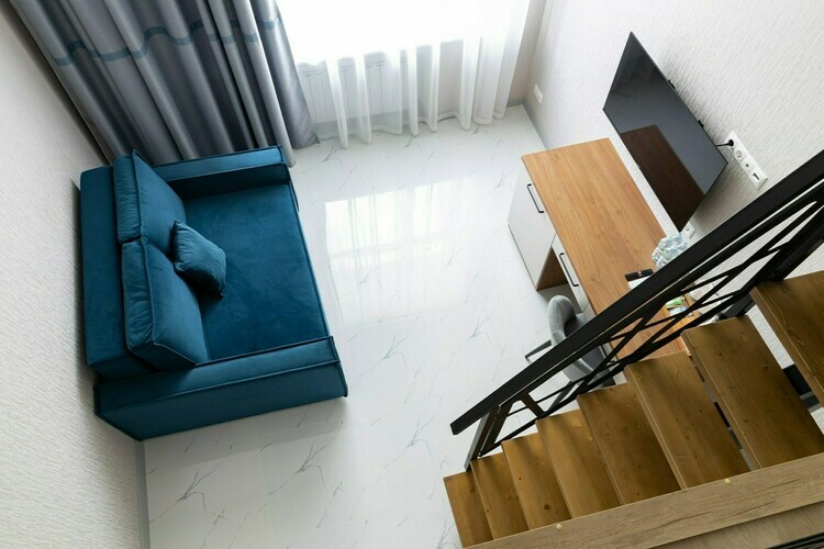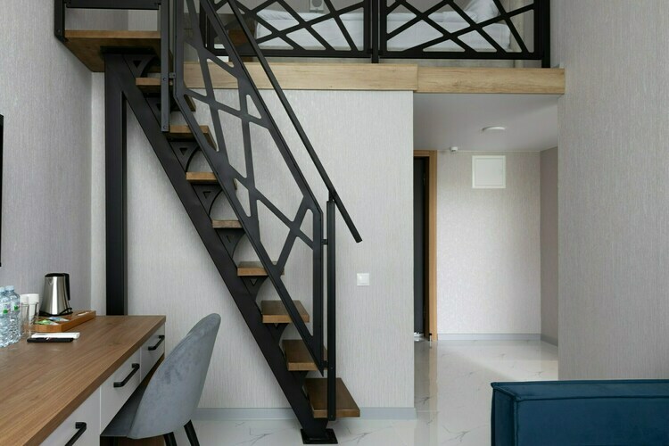 Просторные и роскошные двухуровневые апартаменты с расширенной площадью (24м2) и изысканным интерьером. На верхнем уровне расположена уютная двуспальная кровать, а на нижнем – гостиная с раскладным диваном. В номере также имеется ТВ-зона, платяной шкаф, стол и чайная станция. Ванная комната оснащена всем необходимым для вашего комфорта: есть душевая кабина, раковина, туалет, зеркало с подсветкой, фен, а также разнообразные принадлежности для личной гигиены.