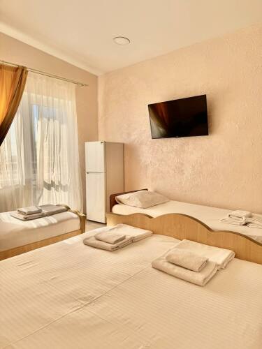 Чтобы гости могли отдохнуть после долгого дня, в каждом номере есть телевизор и кондиционер.