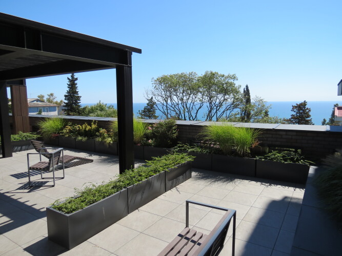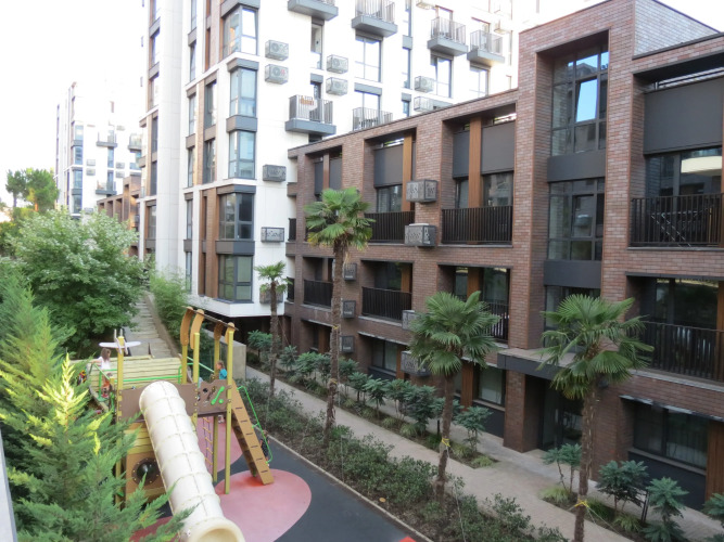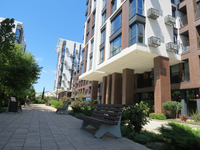 Жители могут бесплатно воспользоваться лежаками, беседками, спортивными тренажёрами и площадкой. Территория дома огорожена и охраняется круглосуточно. Рядом с комплексом проходит тропа здоровья «Терренкур». На территории апартаментного комплекса есть несколько детских площадок, футбольная и волейбольная площадка. На эксплуатируемой кровле можно загорать.