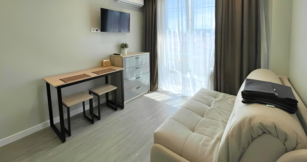 Чтобы вы могли отдохнуть после долгого дня, в номере есть телевизор. Оснащение зависит от выбранной категории номера.