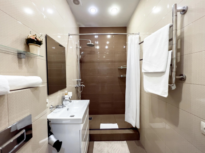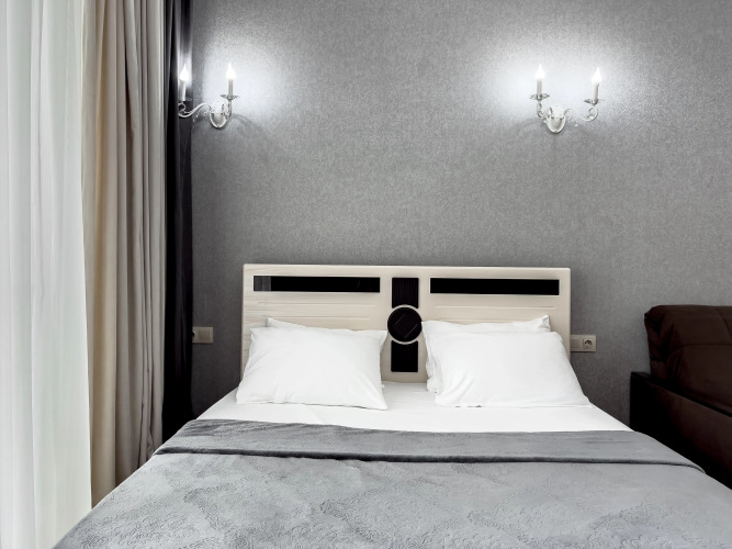 Номер уютно обставлен и оснащён необходимым, чтобы отдохнуть после долгого и насыщенного дня. Имеются телевизор. Перечисленные услуги есть не во всех номерах.