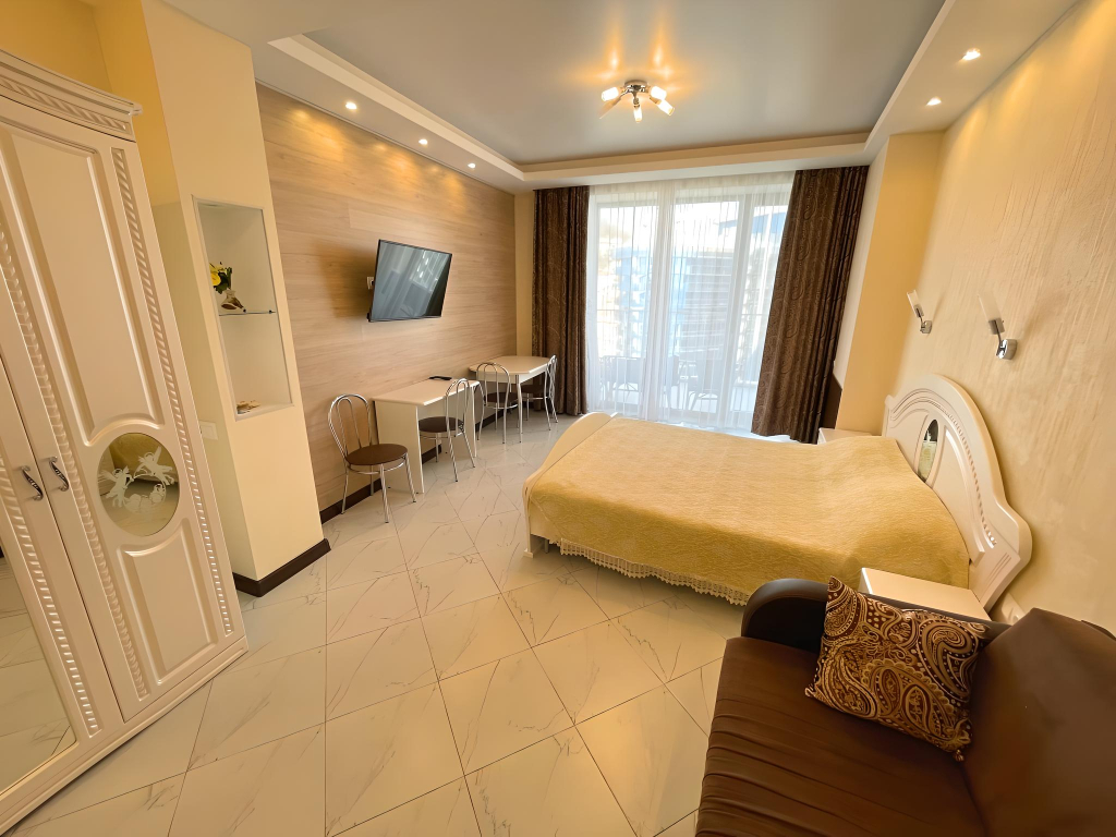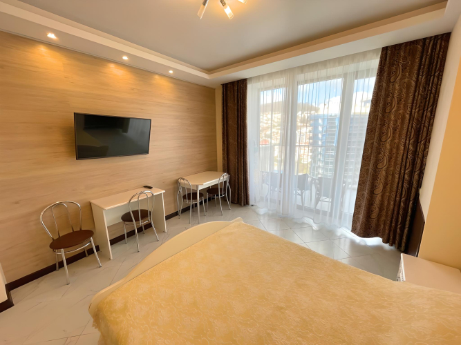 В номере вы найдёте телевизор. Оснащение зависит от выбранной категории номера.