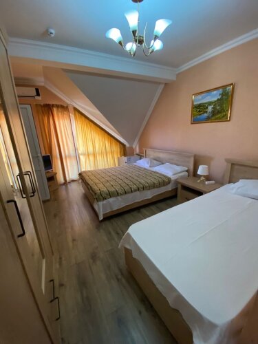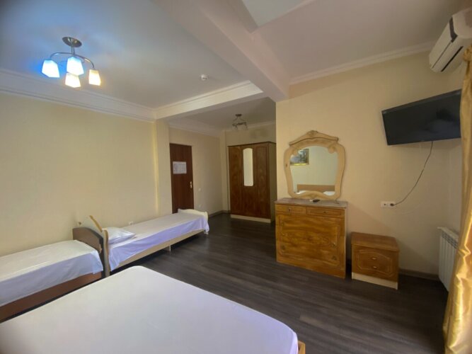 В номере вас будут ждать телевизор. Оснащение зависит от выбранной категории номера.