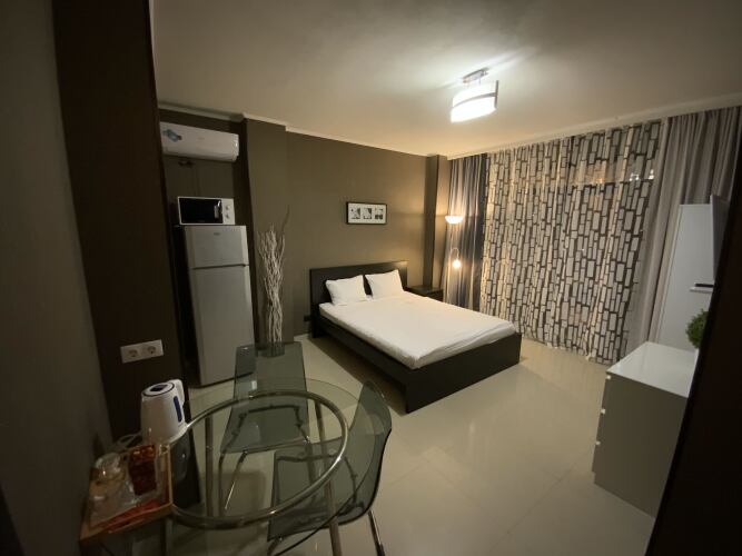Номер уютно обставлен и оснащён необходимым, чтобы отдохнуть после долгого и насыщенного дня. Имеются телевизор. Перечисленные услуги есть не во всех номерах.
