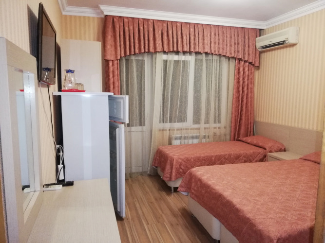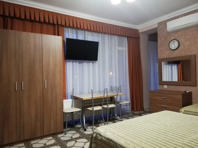 Номер уютно обставлен и оснащён необходимым, чтобы отдохнуть после долгого и насыщенного дня. Имеются телевизор. Оснащение зависит от выбранной категории номера.
