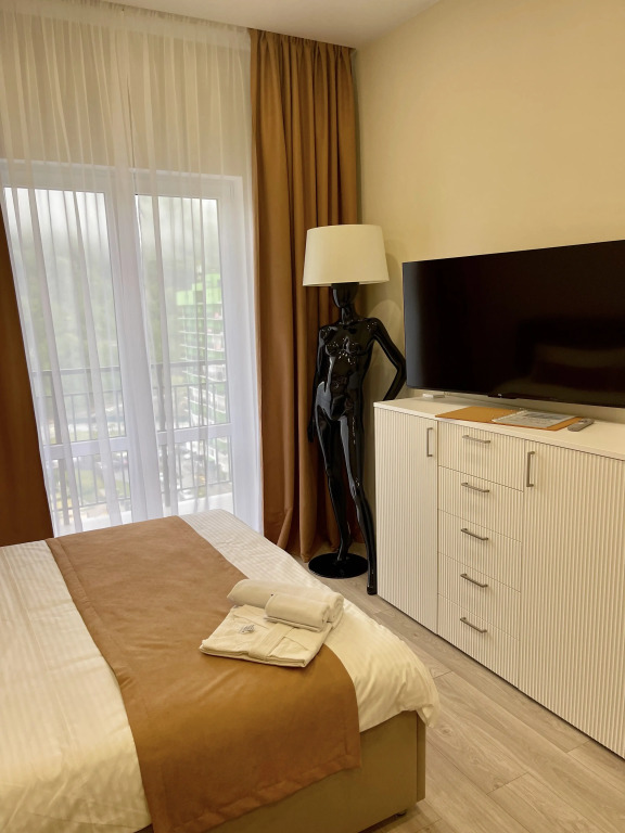 В номере гостей ждут телевизор и халат. Перечисленные услуги есть не во всех номерах.