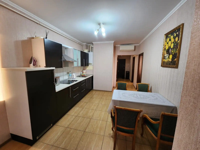 Квартира располагается на одиннадцатом этаже шестнадцатиэтажного дома. Апартаменты подходят для проживания 8 человек. По запросу предоставляется детская кроватка, еврораскладушка, стульчик для кормления, коляска.