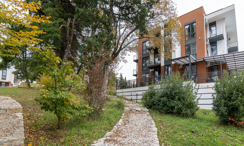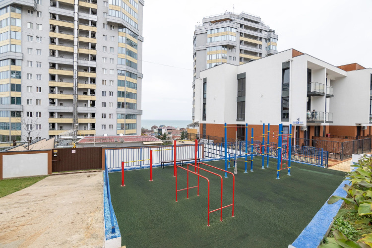 Жилой комплекс находится на второй береговой линии, пешее расстояние до моря составляет 1,5 км.