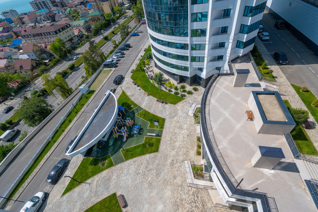 На территории жилого комплекса есть сезонный бассейн, доступный для жителей жилого комплекса за отдельную плату. В апартаментах есть игровые детские комнаты. Есть лифт.