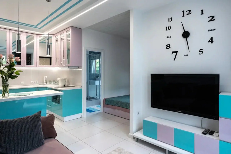 В апартаментах дистанционное заселение. За день до заезда администратор отправляет гостям инструкцию и код от сейфа с ключами.