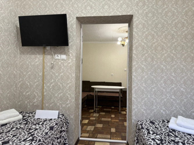 Номер уютно обставлен и оснащён необходимым, чтобы отдохнуть после долгого и насыщенного дня. Имеются телевизор. Перечисленные услуги есть не во всех номерах.