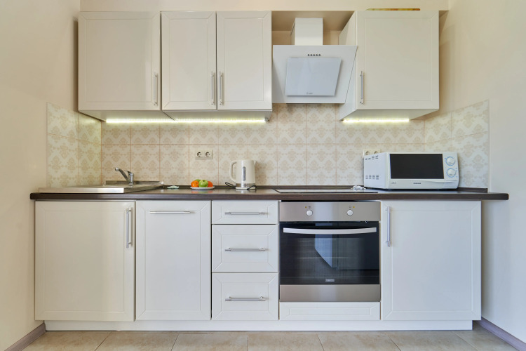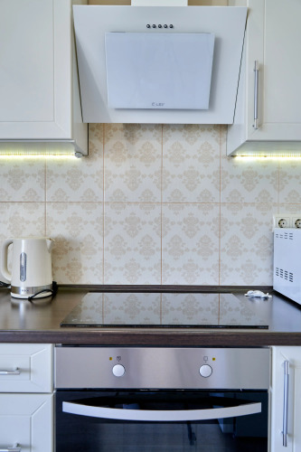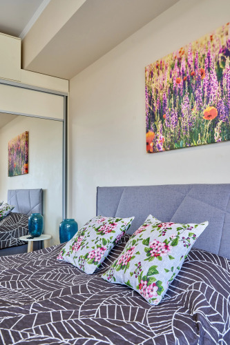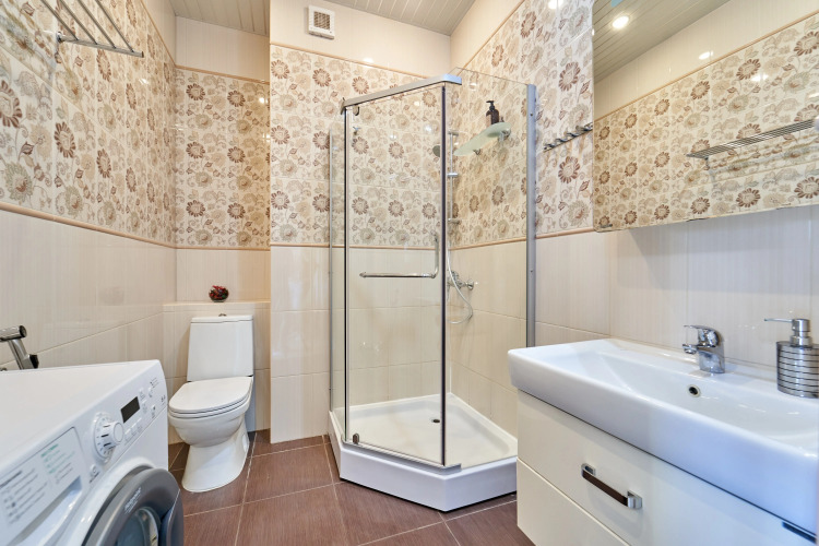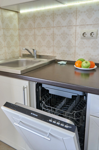 Имеются необходимые удобства от фена до посудомойки и стиральной машины. Есть кондиционер, а также плотные ролл-шторы.