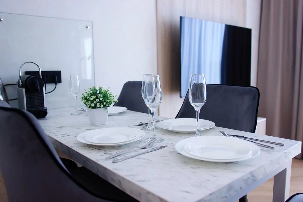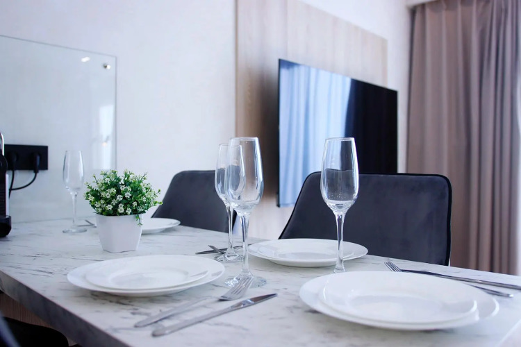 Кафе апартаментов — удобное место для перекуса. Wi-Fi на территории поможет всегда оставаться на связи. Если вы путешествуете на машине, припарковаться можно будет на парковке рядом. Здесь будем баловать себя водными процедурами: есть бассейн.