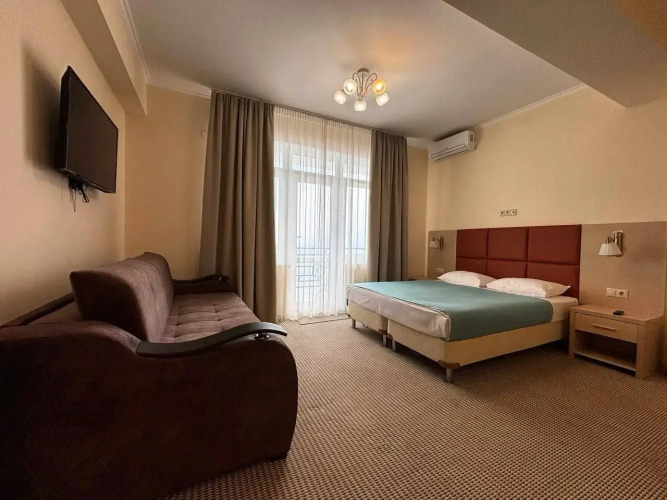 Номер уютно обставлен и оснащён необходимым, чтобы отдохнуть после долгого и насыщенного дня. Имеются телевизор. Перечисленные услуги есть не во всех номерах.