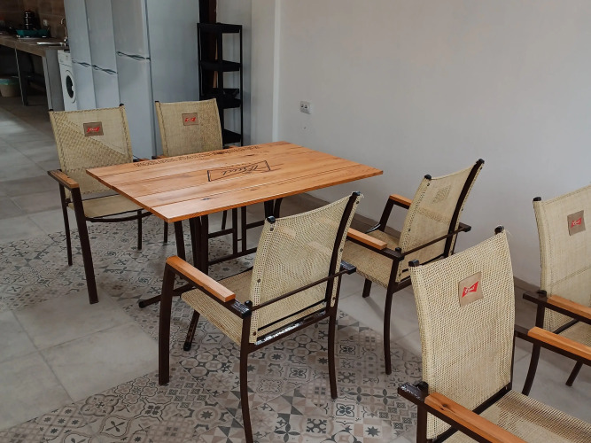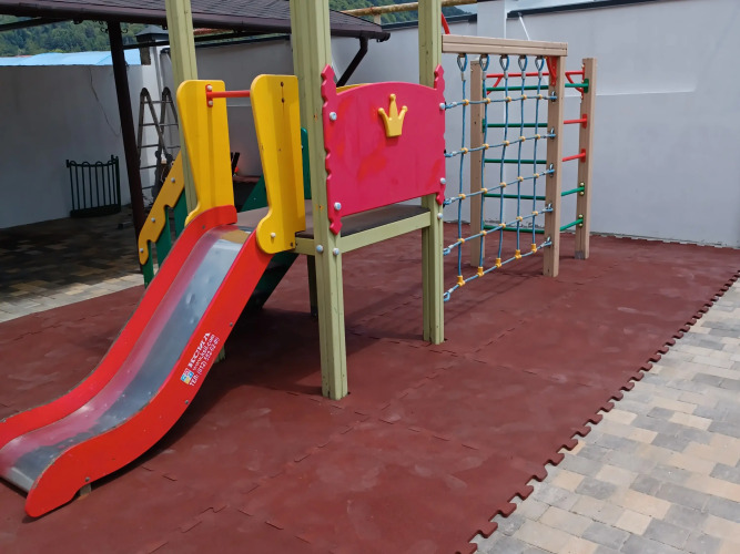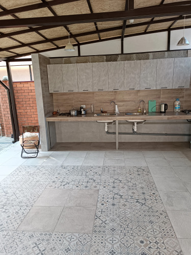 На территории гостевого дома расположена летняя кухня для самостоятельного приготовления пищи с обеденной зоной-патио общей площадью 100 кв.м. Обустроена барбекю-зона с мангалами и приспособлениями для готовки. Есть спортивная и детская площадки, детский игровой уголок с конструкторами и игрушками, зона отдыха. Имеется Wi-Fi.