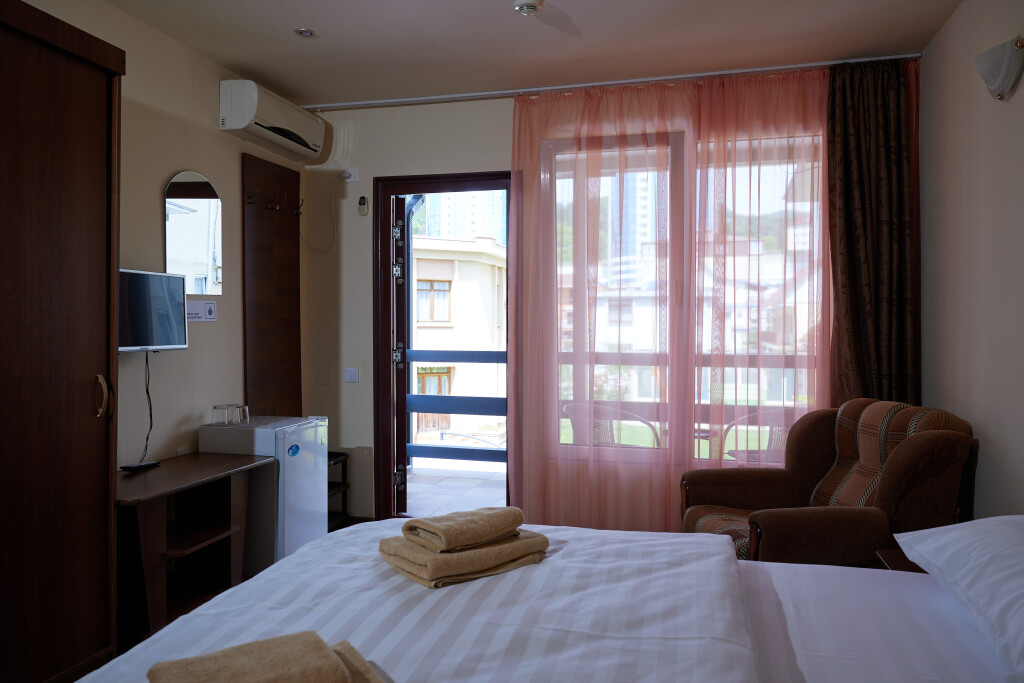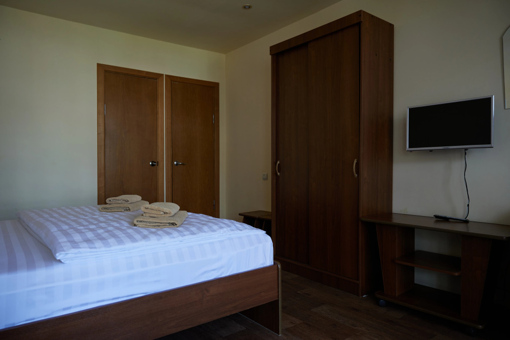 В номере гостей ждут телевизор. Оснащение зависит от выбранной категории номера.