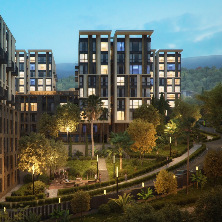В пользовании гостей в жилом комплексе большая открытая терраса с шезлонгами, столами, стульями, озеленением и видом на море. Площадка территории охраняемая, с видеонаблюдением. На 1 этаже находятся магазины и кафе, на территории находятся площадки для занятия спортом. Для гостей на автомобиле по запросу предоставляется место в охраняемом паркинге.