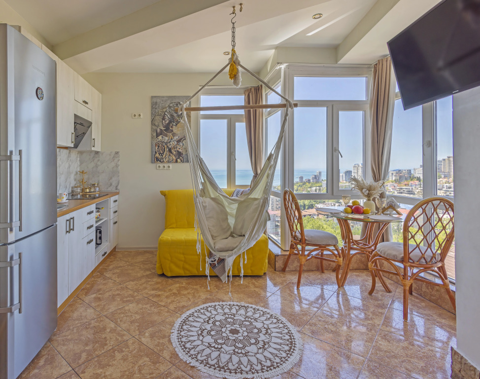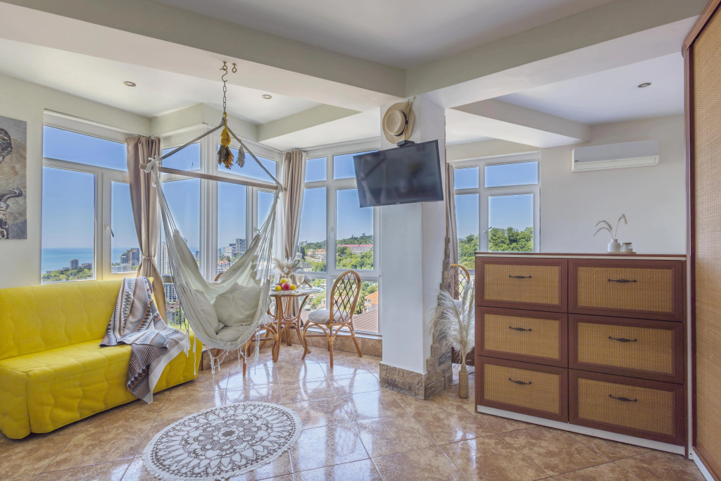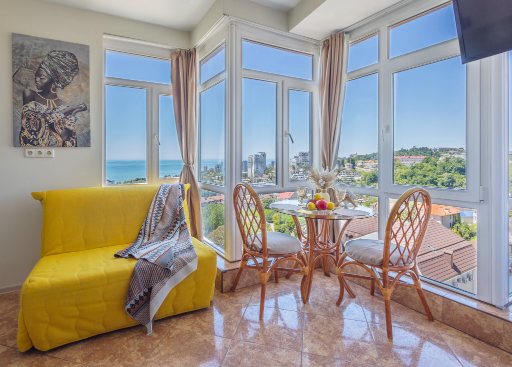 Подходящий вариант для большой компании: апартаменты «Апартаменты с видом на море» находятся в Сочи. Эти апартаменты располагаются в 4 км от центра города. Рядом с апартаментами можно прогуляться. Неподалёку: Пляж Парус, Пляж Бытха и Сочинский дендрарий.