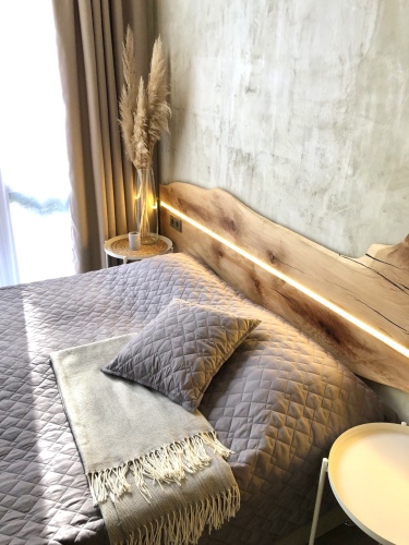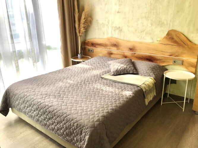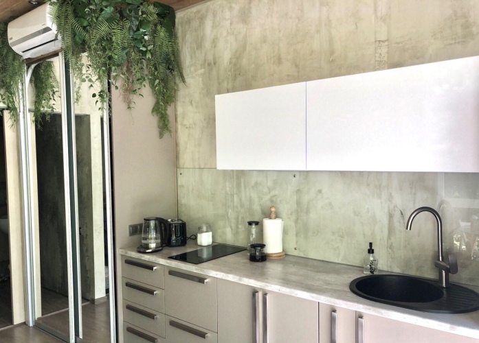 Оборудование: холодильник, кондиционер, чайник, индукционная плита со специальной посудой, микроволновая печь, утюг, гладильная доска, комплект посуды, полотенца, постельные принадлежности, фен, шампунь, гель для душа, одноразовые тапочки.