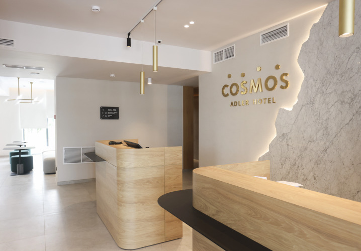 Гостиница Cosmos Adler Hotel 4 звезды, адрес на карте Сочи, ул. Просвещения, 118б/2, с характеристиками номеров и доступностью онлайн бронирования на площадке vashotel.ru , стоимость проживания и удобства.