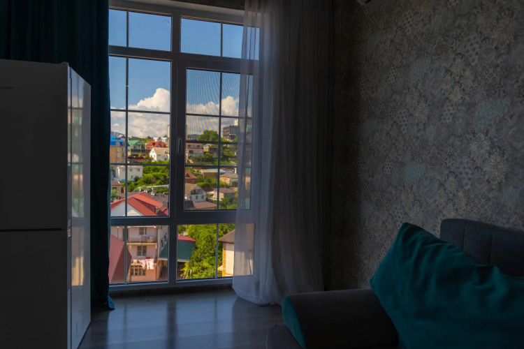 Гостиница Уютная квартира с панорамными окнами от LetoApart, адрес на карте Сочи, ул. Православная 15/7а, с описанием номеров и доступностью онлайн бронирования на ресурсе ВашОтель.RU , стоимость проживания и удобства.