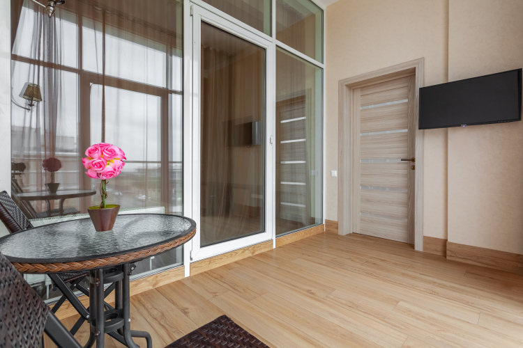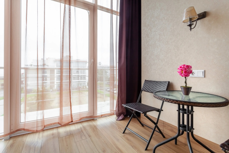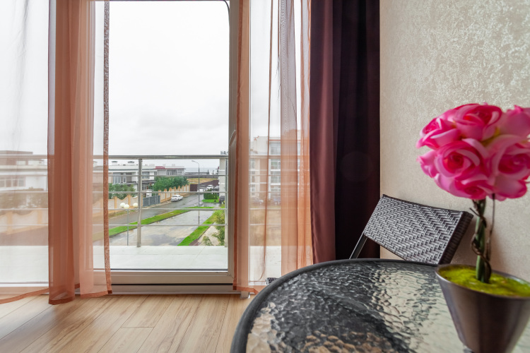 Для удобства гостей в апартаментах имеются: оборудованная кухня, плита, кондиционер, набор посуды, холодильник, утюг и гладильная доска, стиральная машина, фен, высокоскоростной интернет wi-fi, ТВ. Для гостей подготовлены косметические наборы и тапочки. Из окон открывается вид на море. Гости с автомобилем могут воспользоваться парковочными местами. Разрешено проживание с животными.