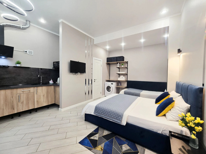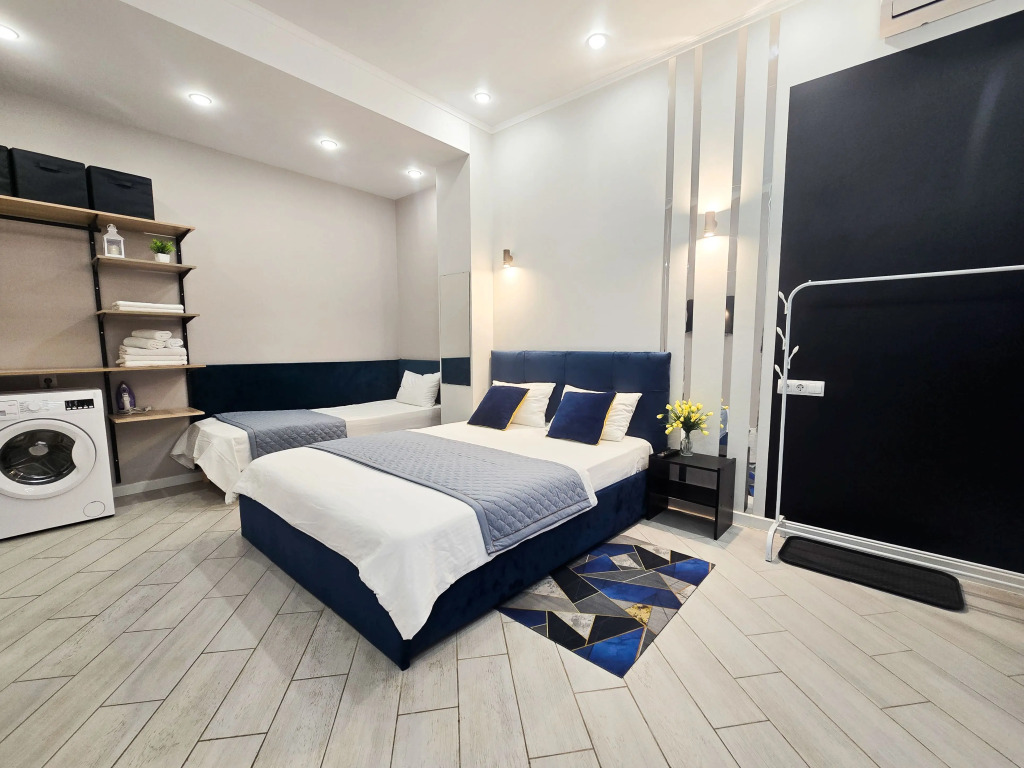 Гостиница Квартира Стильная студия для 3х человек с кроватями и зоной отдыха на улице,