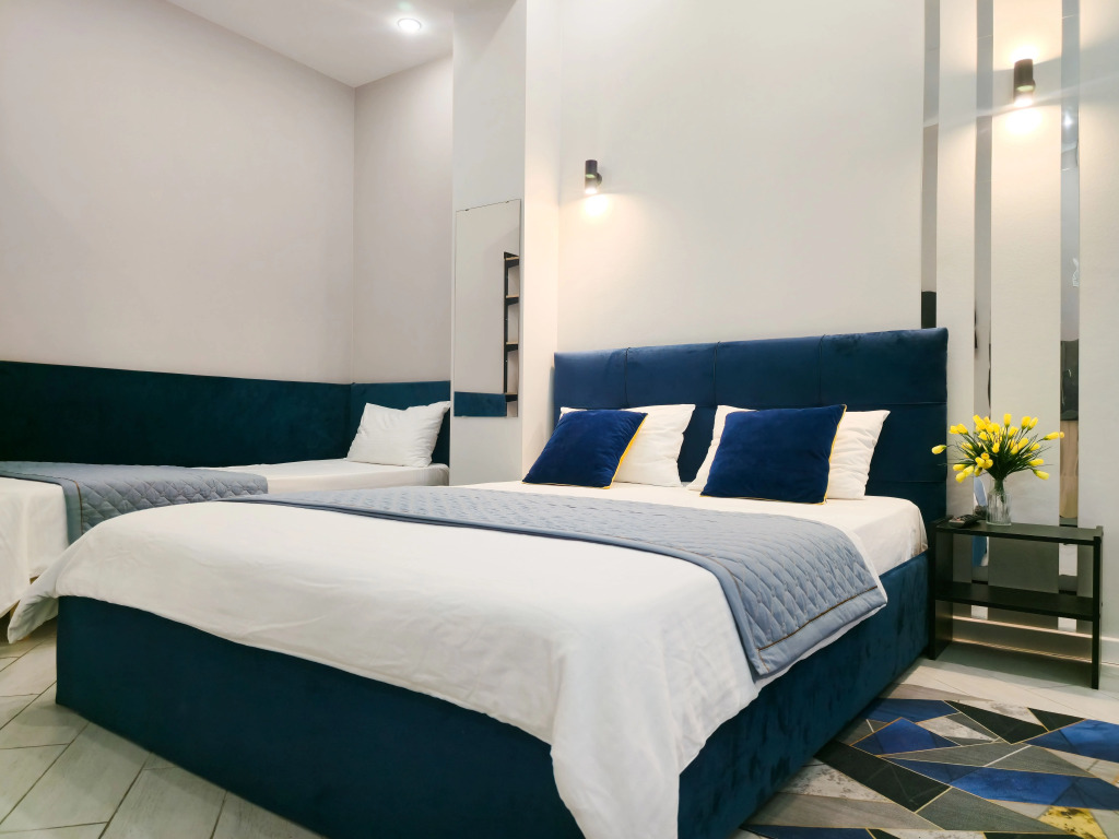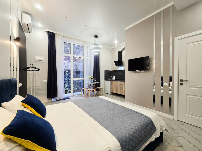 Номер уютно обставлен и оснащён необходимым, чтобы отдохнуть после долгого и насыщенного дня. Имеются телевизор. Оснащение зависит от выбранной категории номера.