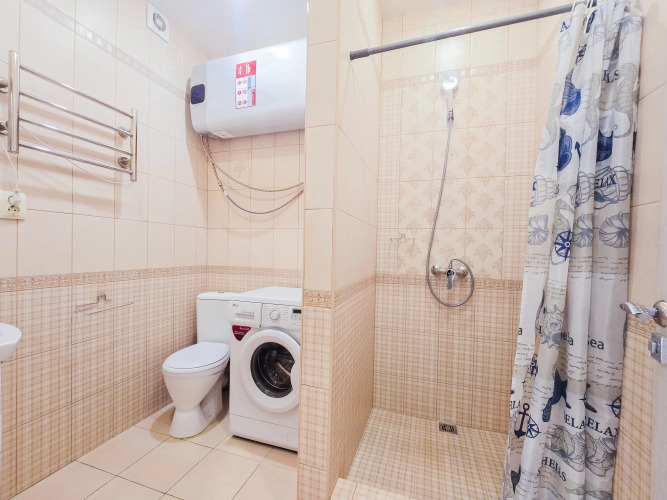 Студия полностью укомплектована бытовой техникой для комфортного проживания: имеется плита, кондиционер, набор посуды, холодильник, утюг, гладильная доска, стиральная машина, фен, высокоскоростной интернет Wi-Fi, ТВ, гостям предоставляются косметические наборы и тапочки. Из апартаментов открывается вид на тихую улицу.
