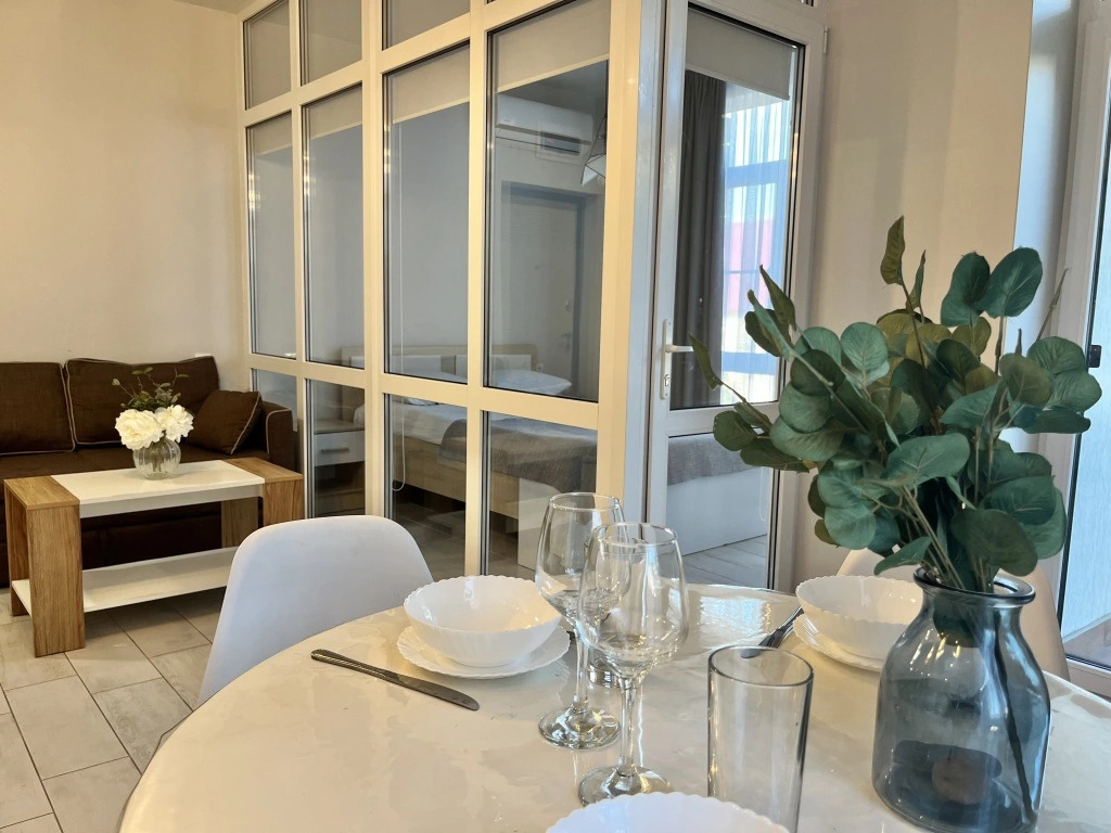 В квартире есть балкон, откуда открывается частичный вид на море. В распоряжении гостей фен, гладильная доска, утюг, стиральная машина, микроволновая печь, плита, посуда, кондиционер и сушилка. Гостям предоставляются постельное бельё, полотенца, средства гигиены, бесплатный доступ к сети Wi-Fi. Обеспечен круглосуточный доступ к горячей воде. Автомобиль можно припарковать на общественной парковке вдоль дороги.