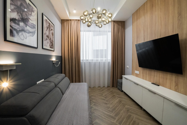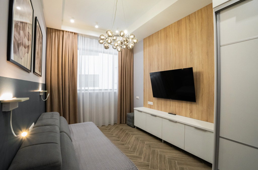 В номере вы найдёте телевизор. Оснащение зависит от выбранной категории номера.