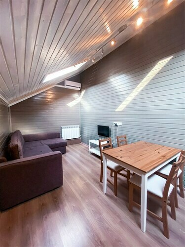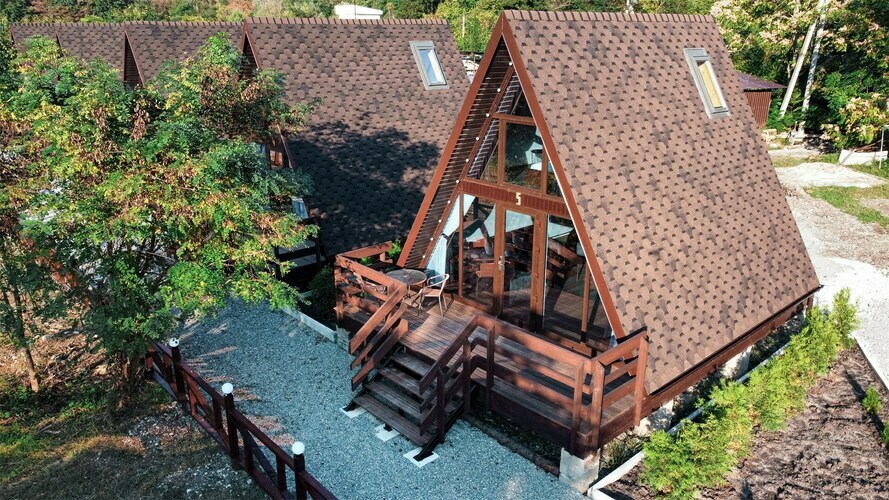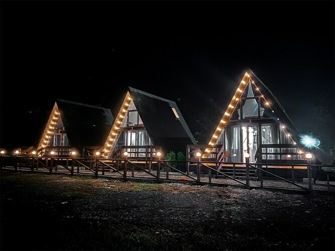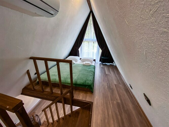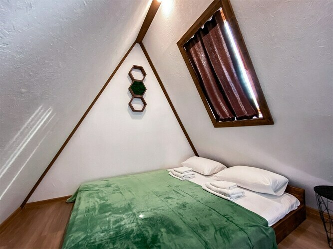 А-Домики - это шале треугольной формы, выполненные из экологичных материалов в строгом скандинавском стиле. Просторная гостиная, на втором свете - два полноценных спальных места. Наши домики рассчитаны на большую компанию 4-6 человек или семью с детьми.