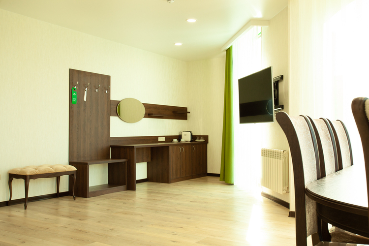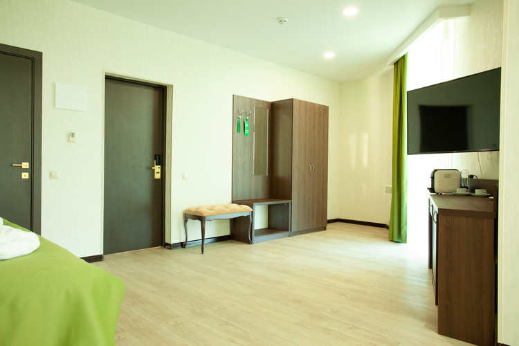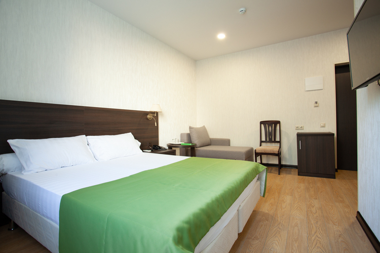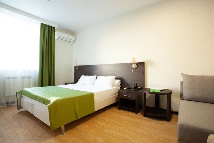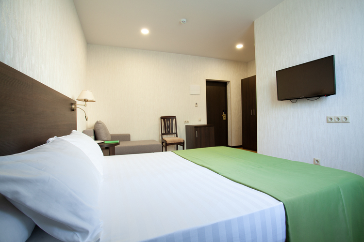 Отличный экономный номер для двоих с телевизором и сплит-системой. Общая площадь номеров категории "Стандарт" варьируется от 17 до 28 кв. м. Номера оснащены всем необходимым.