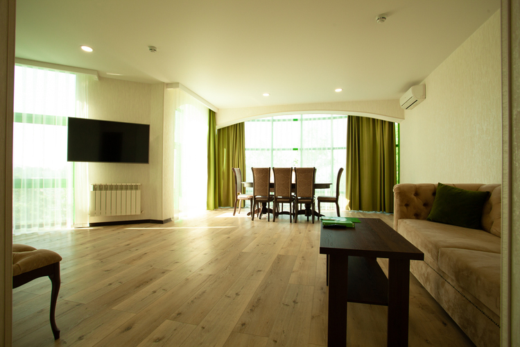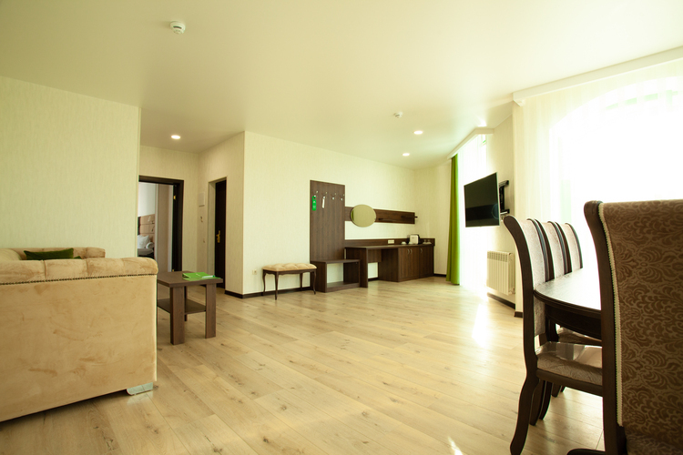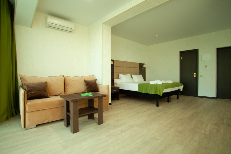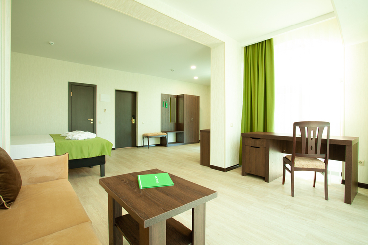 Общая площадь номеров категории "Люкс" варьируется от 38 до 66 кв. м. С балконов номеров открывается вид на город и на море. Двухкомнатный номер для семейного и дружественного отдыха.