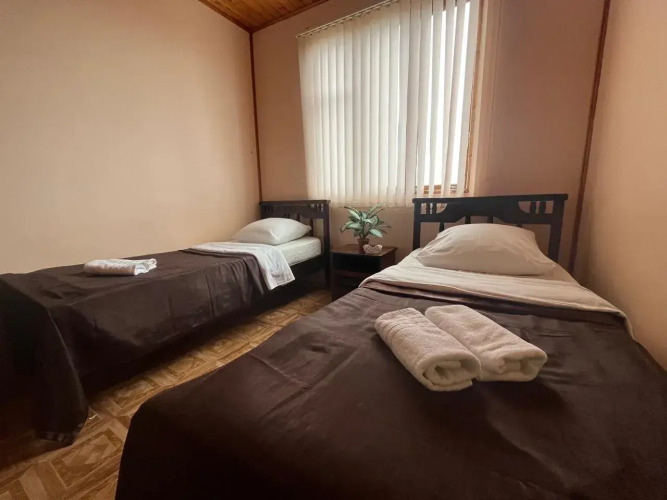 Общая кухня оборудована для самостоятельного приготовления пищи. Если вы путешествуете на машине, припарковаться можно будет на парковке рядом. Среди развлечений на территории — площадка для барбекю.