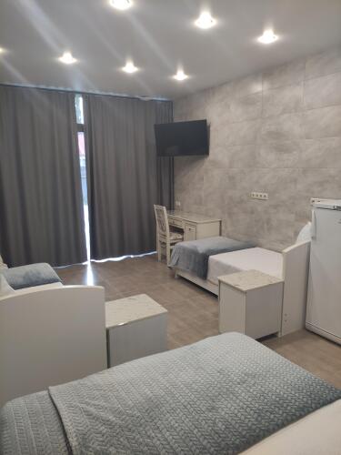 Номер уютно обставлен и оснащён необходимым, чтобы отдохнуть после долгого и насыщенного дня. Имеются телевизор. Оснащение зависит от выбранной категории номера.