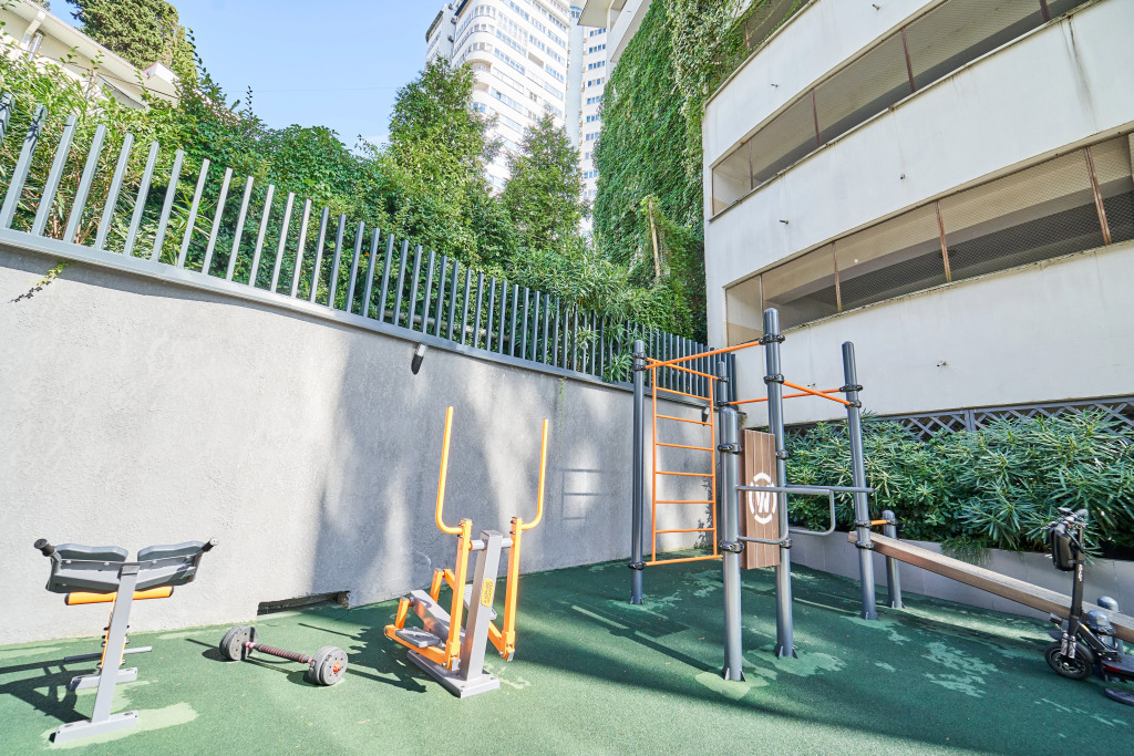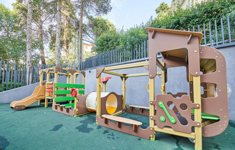 Территория огорожена, есть сад, детская и спортивная площадки.