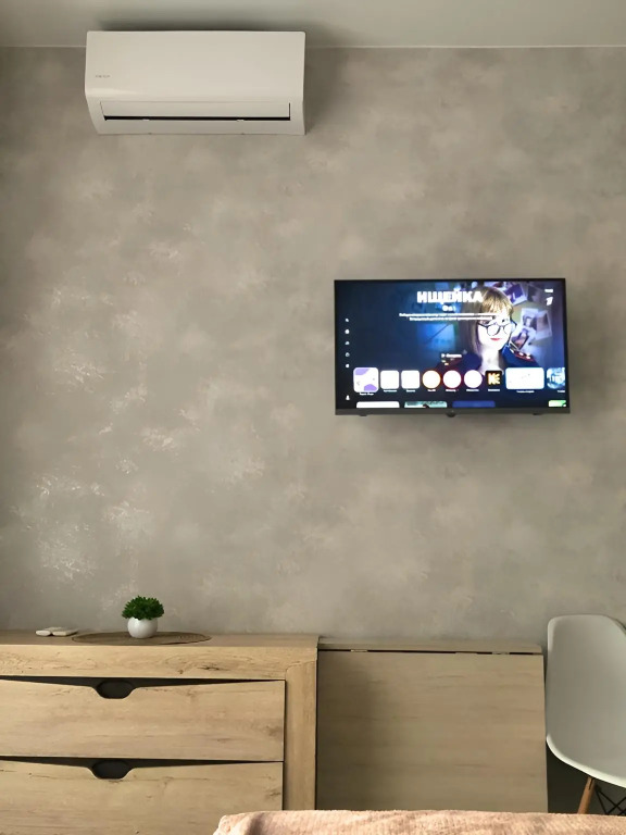 Гостям доступны 3 спальных места. Квартира оснащена необходимым для проживания, имеются: двуспальная кровать с высоким ортопедическим матрасом, дополнительная раскладная кровать с ламелями, раскладной стол-книжка, стиральная машина, бойлер, кондиционер, Wi-Fi, Smаrt ТV и кабельное телевидение, душ, фен, утюг, гладильная доска. На кухне доступны: плита, вытяжной шкаф, холодильник, микроволновая печь и посуда. Также есть шумоизоляция, шторы-блэкаут, постельное бельё, белые полотенца.