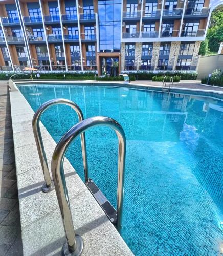 Квартира «Квартира-студия в ЖК Морской квартал» находится в Сочи. Квартира расположена в пешей доступности до берега моря. Закрытая и охраняемая территория. На территории: 2 бесплатных бассейна с подогревом.