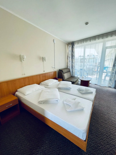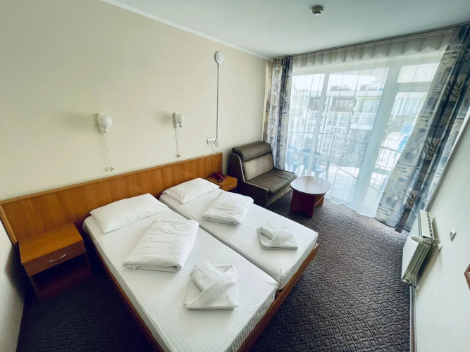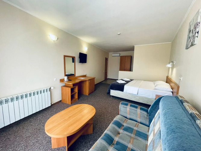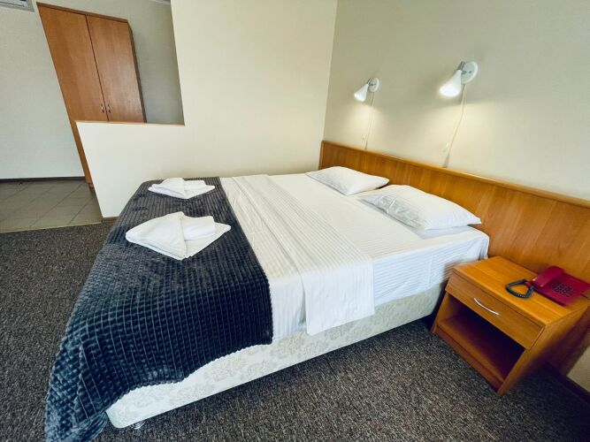Номер уютно обставлен и оснащён необходимым, чтобы отдохнуть после долгого и насыщенного дня. Имеются телевизор. Перечисленные услуги есть не во всех номерах.