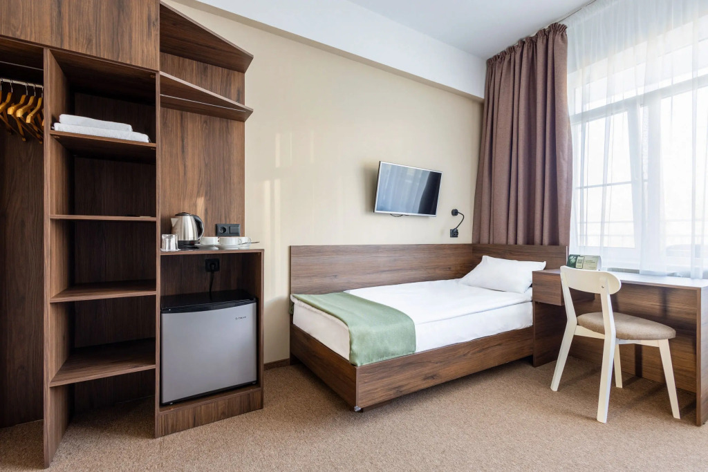 Номер уютно обставлен и оснащён необходимым, чтобы отдохнуть после долгого и насыщенного дня.