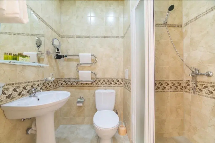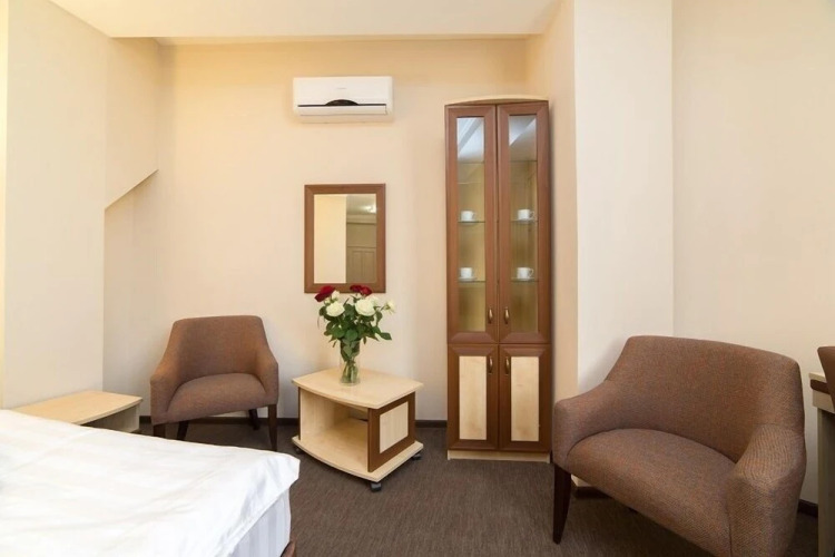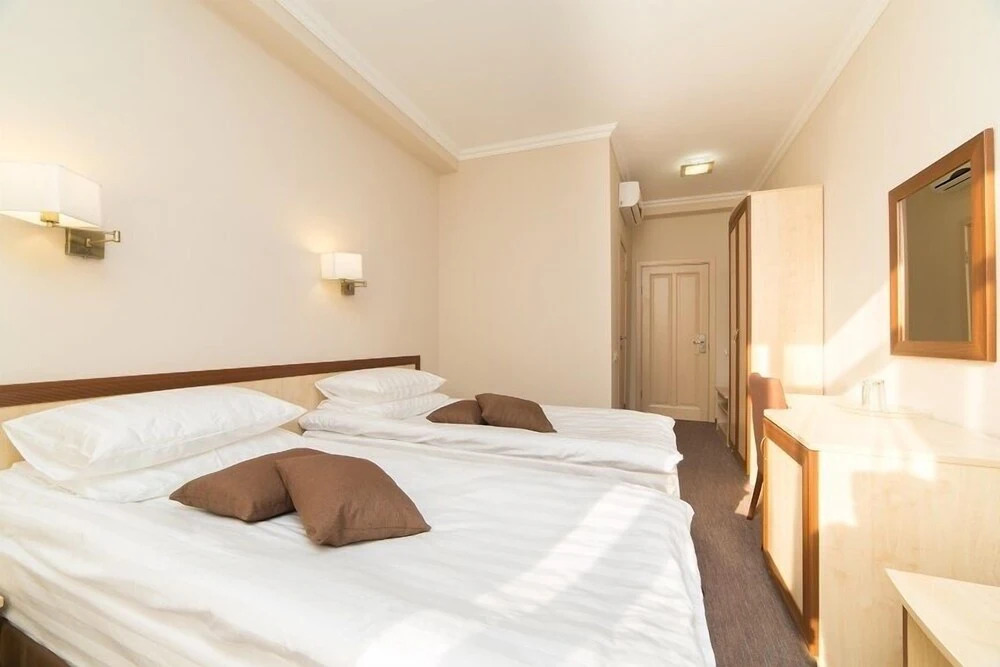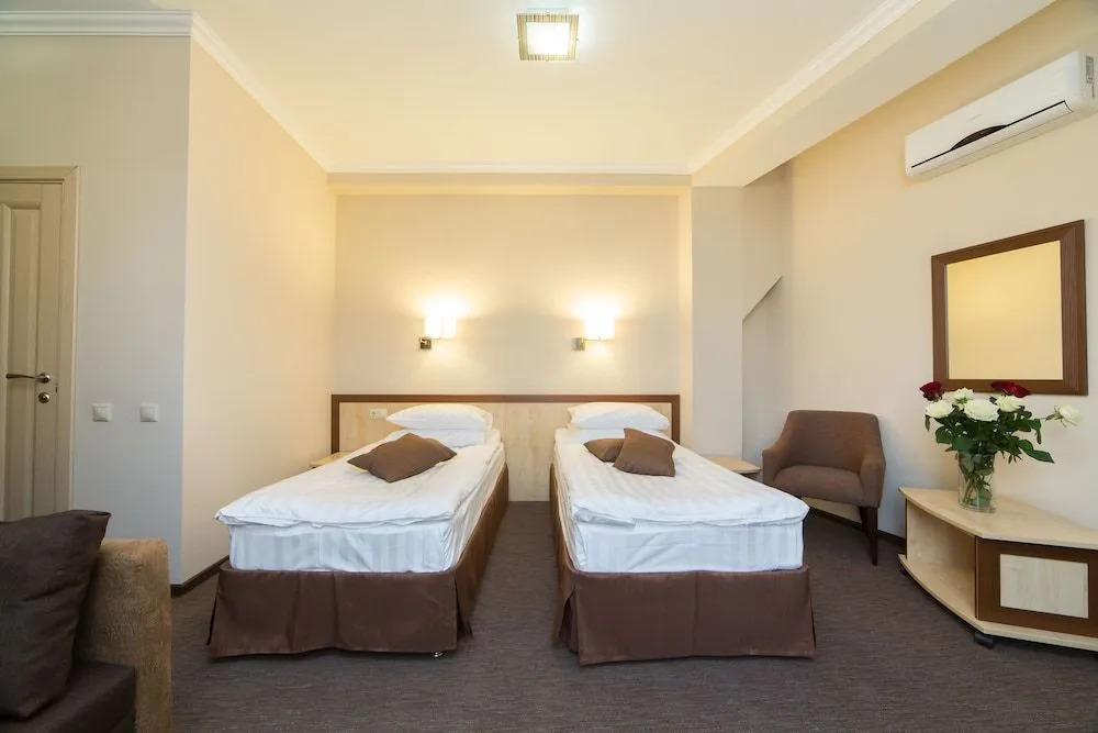 Номер уютно обставлен и оснащён необходимым, чтобы отдохнуть после долгого и насыщенного дня. Имеются душ и телевизор. Оснащение зависит от выбранной категории номера.