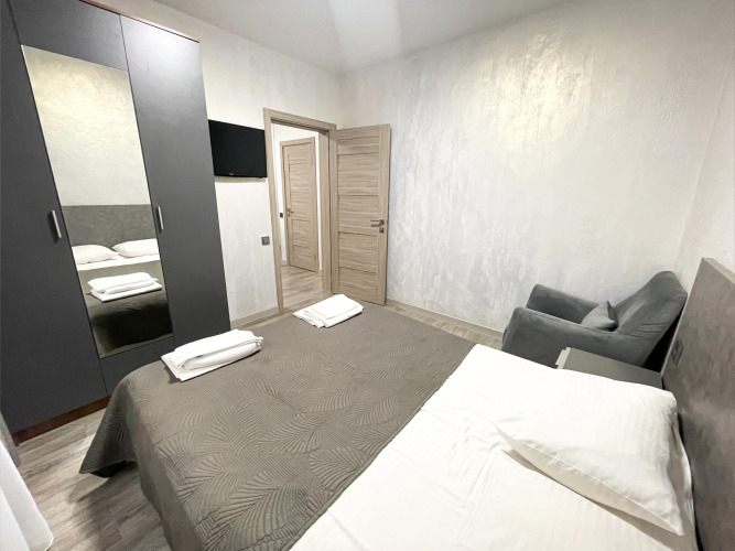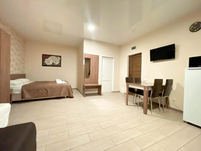 Номер уютно обставлен и оснащён необходимым, чтобы отдохнуть после долгого и насыщенного дня. Имеются телевизор. Перечисленные услуги есть не во всех номерах.