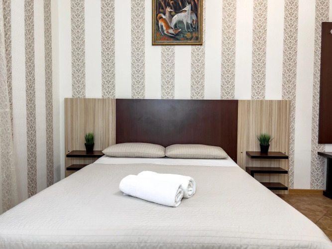 В номерах различной категории установлена мебель, гардероб, кондиционер, холодильник и телевизор. В каждом номере предусмотрена персональная душевая комната.