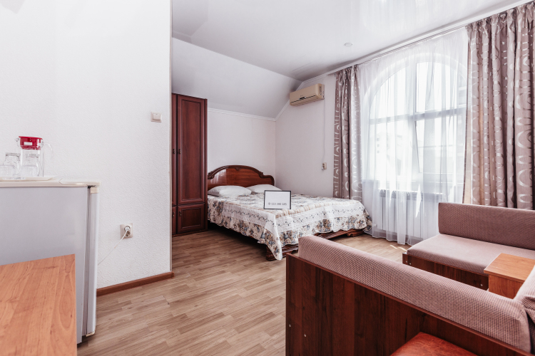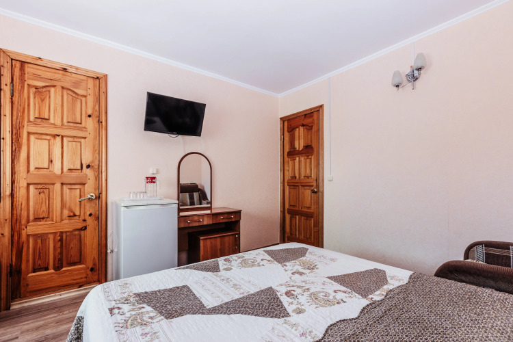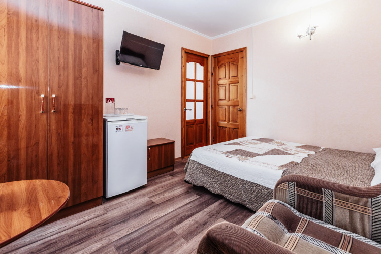 Номер уютно обставлен и оснащён необходимым, чтобы отдохнуть после долгого и насыщенного дня. Имеются телевизор. Перечисленные услуги есть не во всех номерах.