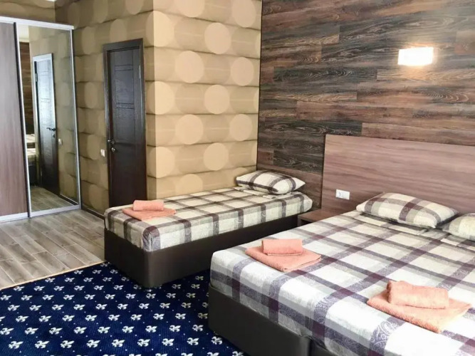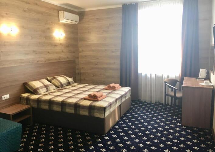 Номер уютно обставлен и оснащён необходимым, чтобы отдохнуть после долгого и насыщенного дня. Имеются телевизор. Перечисленные услуги есть не во всех номерах.